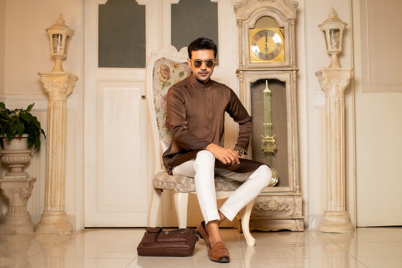 Make a statement this Eid with our Men’s Premium Panjabi in Dark Coffee, crafted from 100% premium cotton printed fabric for ultimate comfort and refined elegance. The rich, deep hue adds a touch of sophistication, making it the perfect choice for any festive occasion.