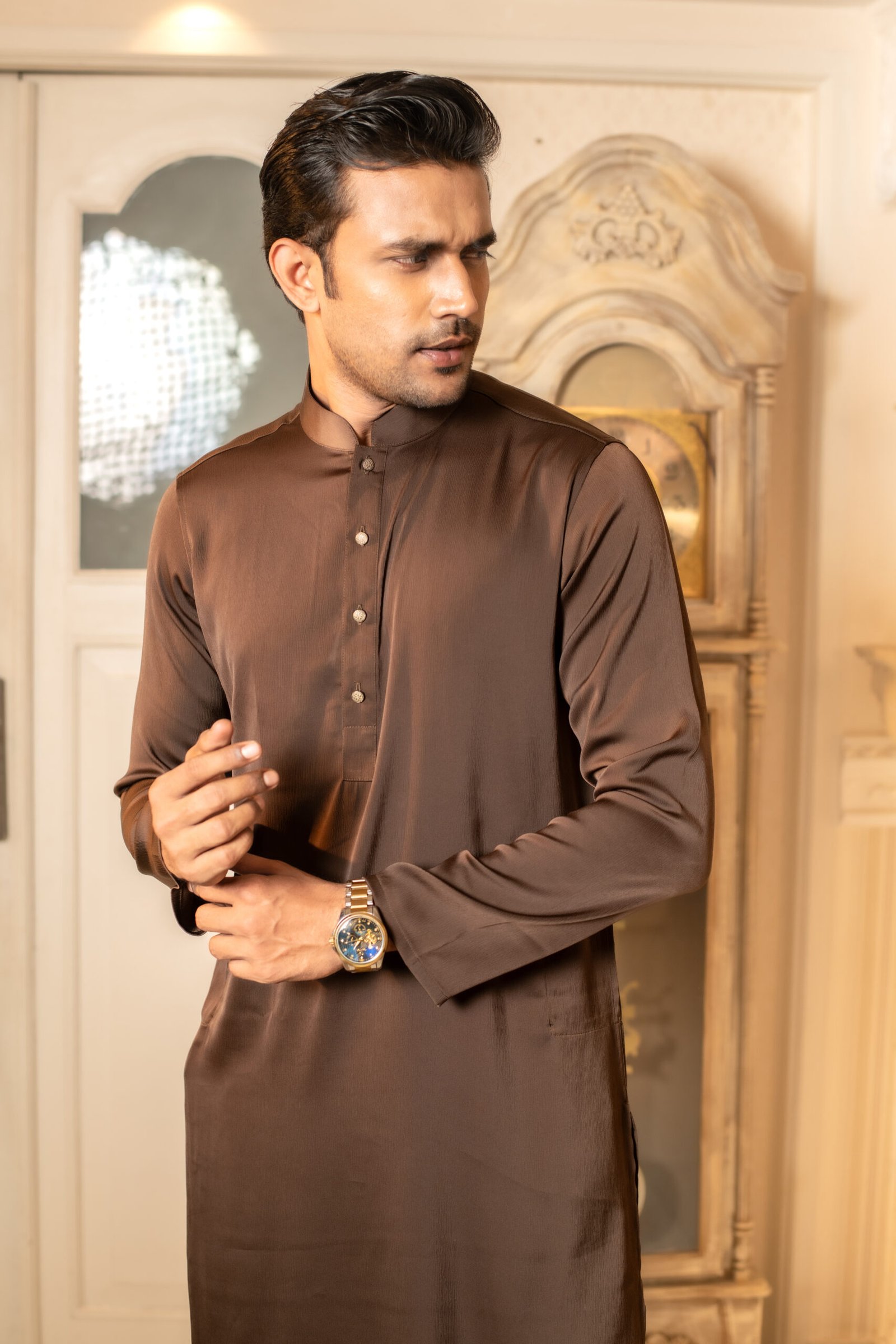 Elevate your Eid look with our Men’s Basic Panjabi, crafted from 100% premium cotton printed fabric in a rich Dark Coffee shade. A perfect blend of tradition and sophistication.