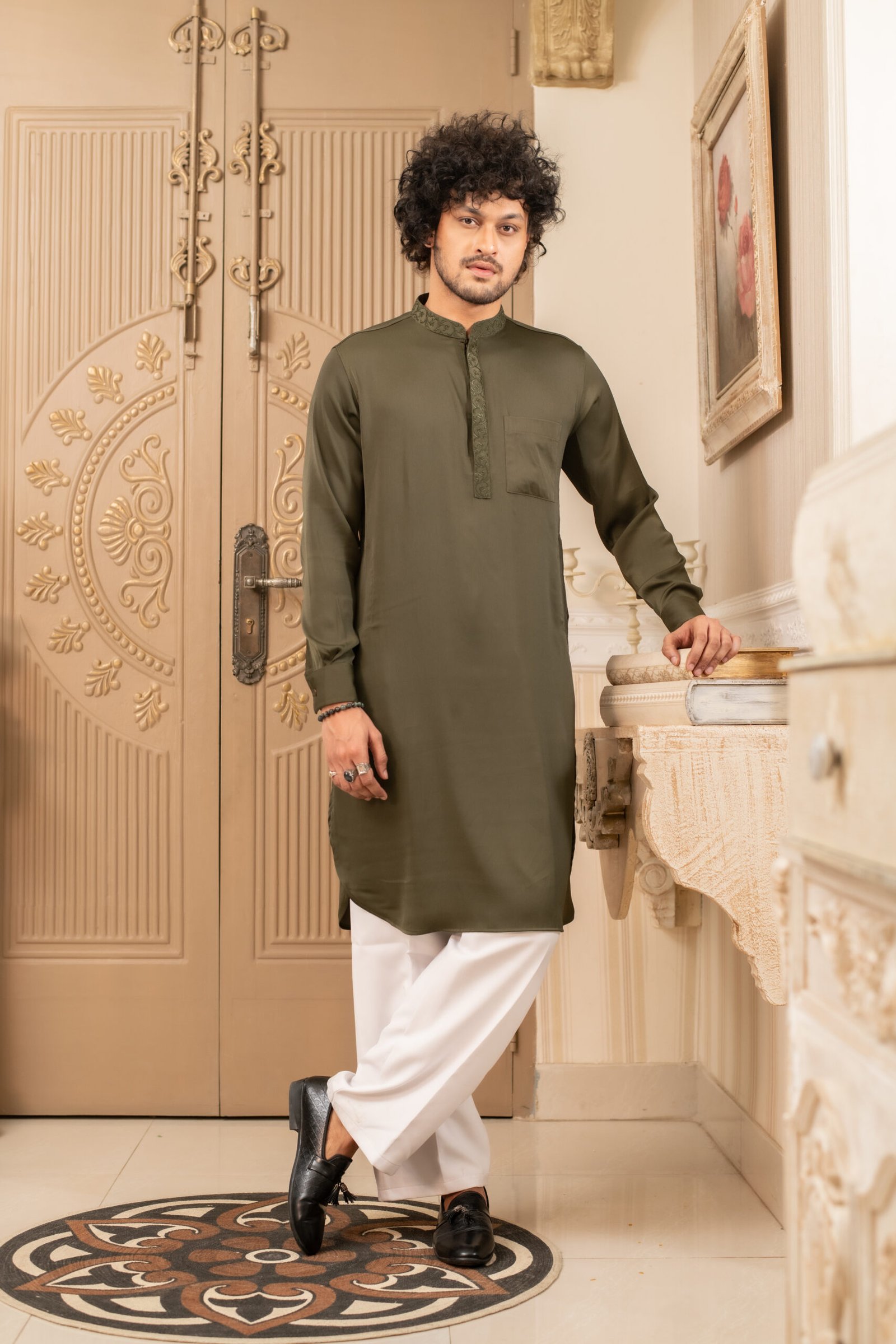 Introducing our Men’s Basic Panjabi in a timeless Olive shade, crafted from 100% premium cotton for unmatched comfort and elegance. A must-have for your Eid celebrations!